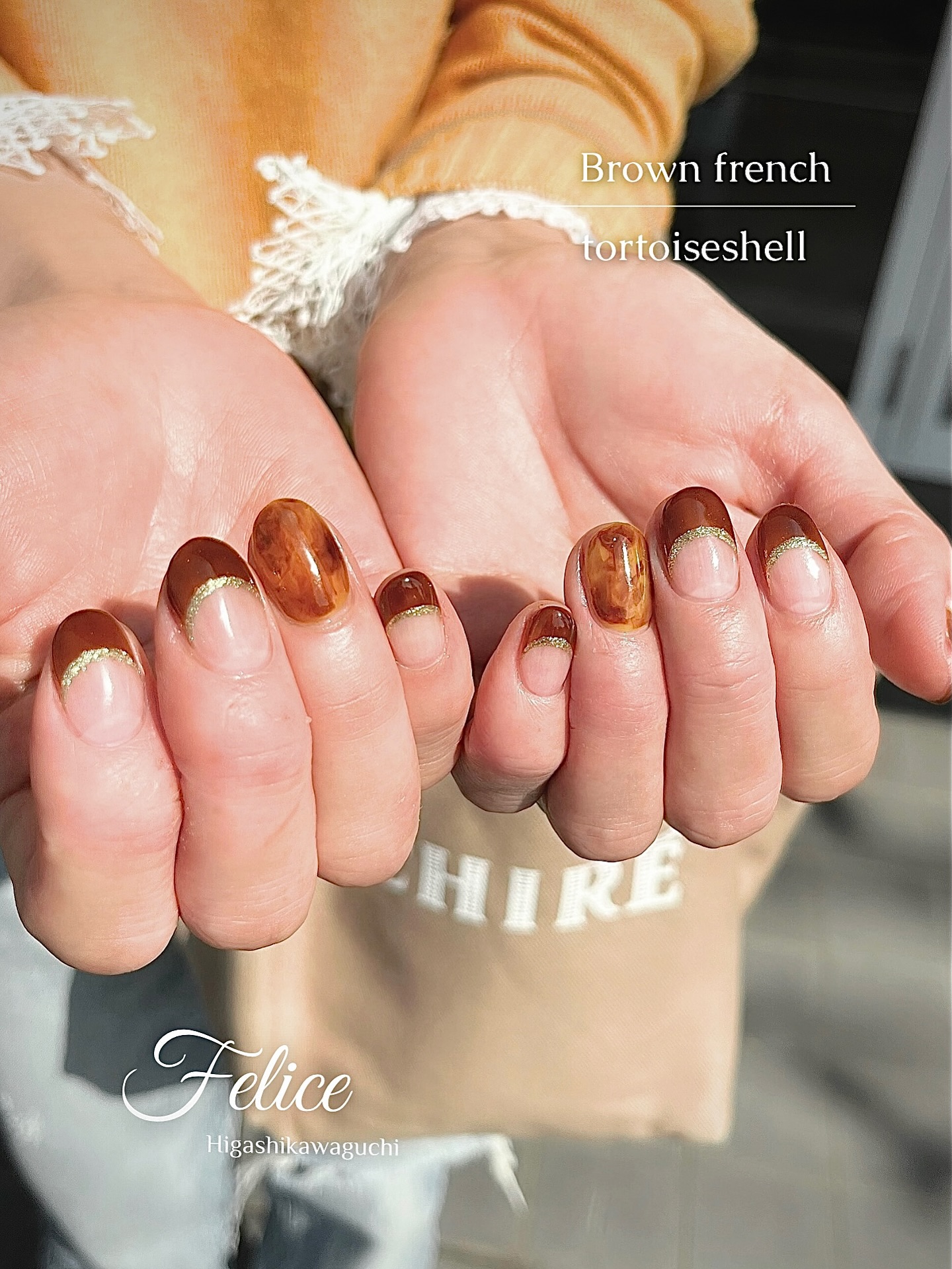 フレンチに一本だけべっ甲アートを入れたオリジナルデザイン