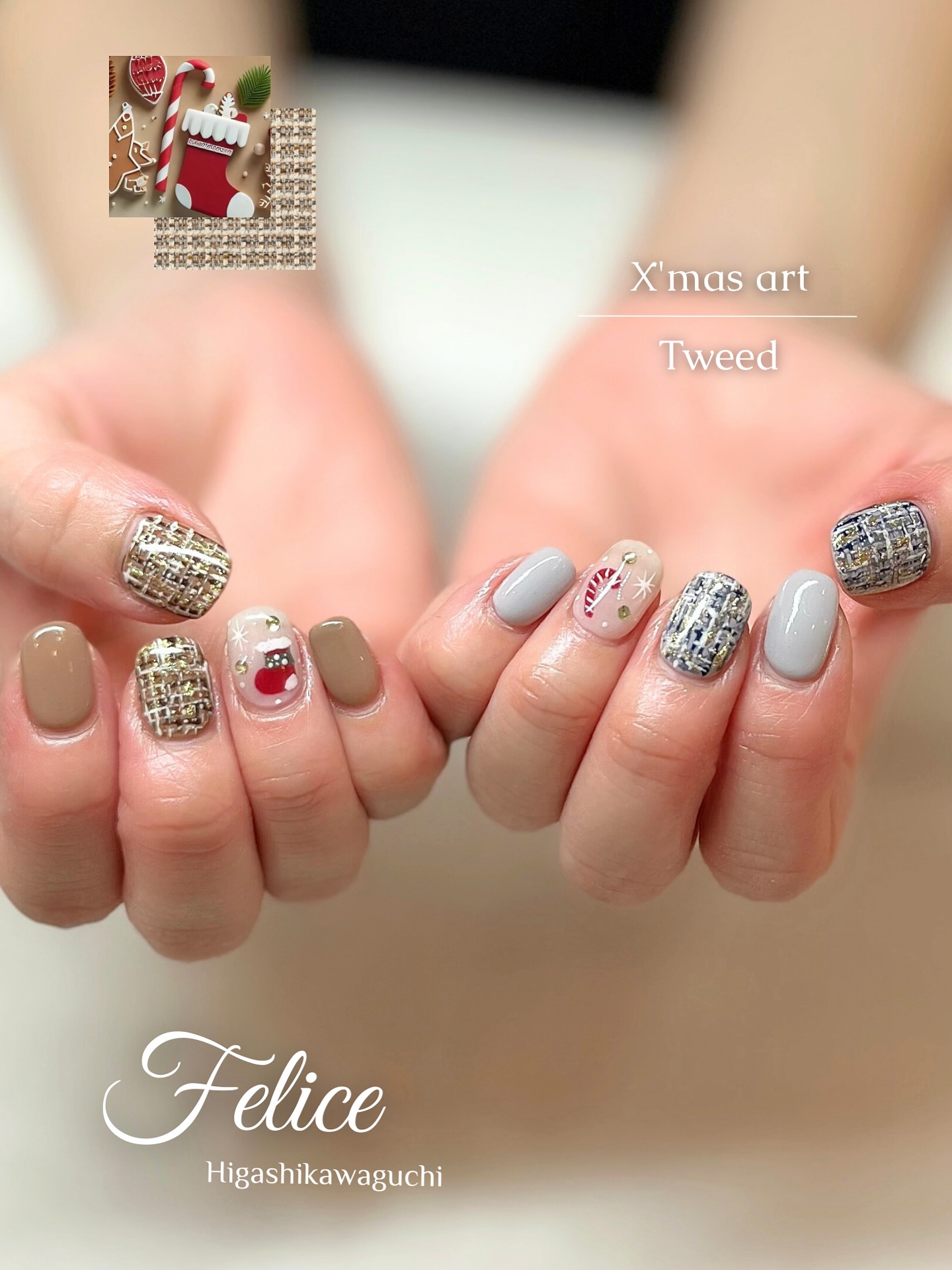 ツイードとクリスマスアートを一本ずつ🪅*.+