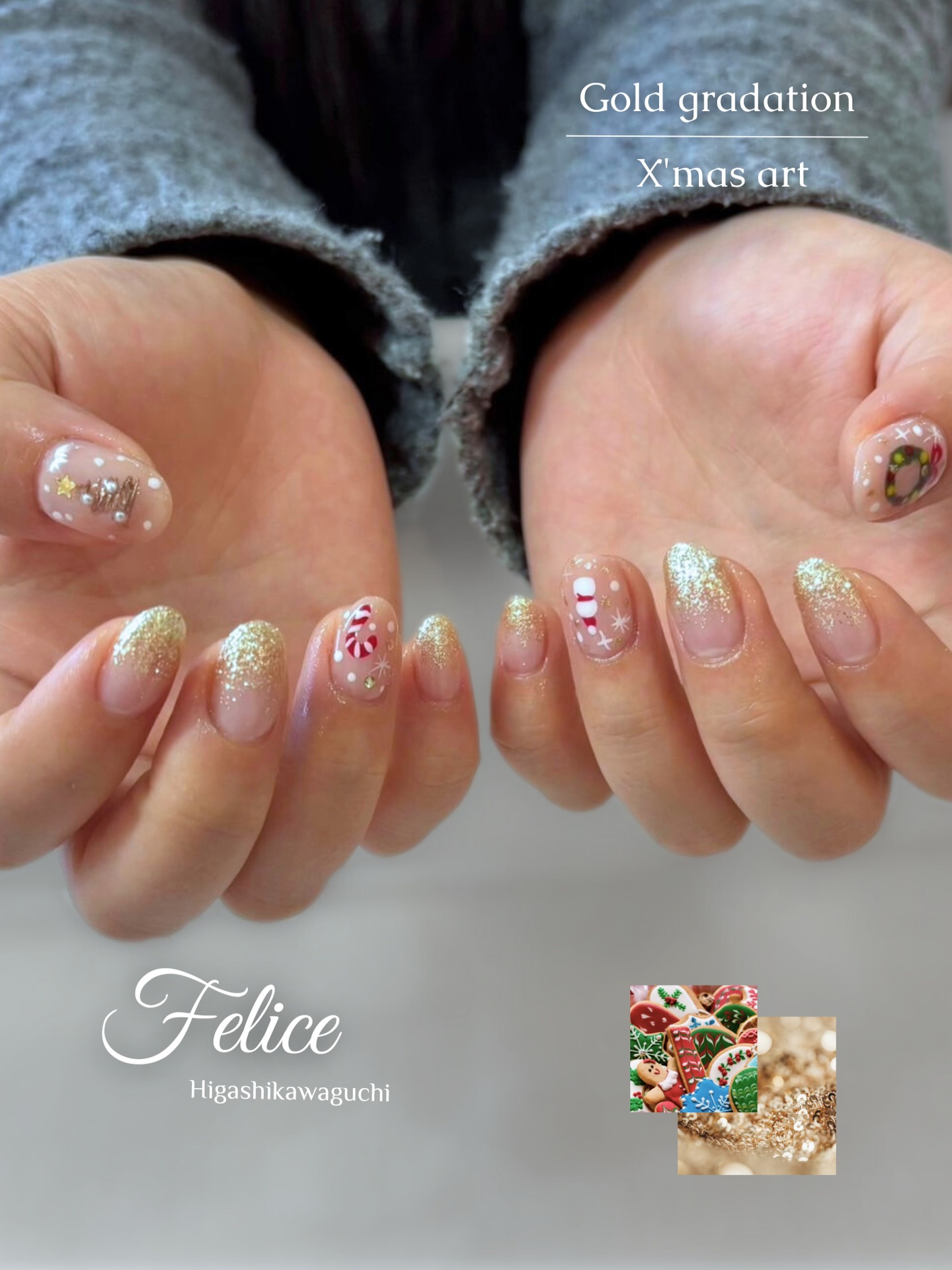 ラメグラデーションにクリスマスアートを追加しました🪅