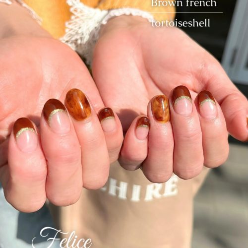 こんにちは♪ Felice東川口店のです! ・・・・・・・・・・・・・・・・・・・・・ お客様ネイルをご紹介 フレンチに一本だけべっ甲アートを入れたオリジナルデザイン 担当 NATSUMI 駐車場完備…