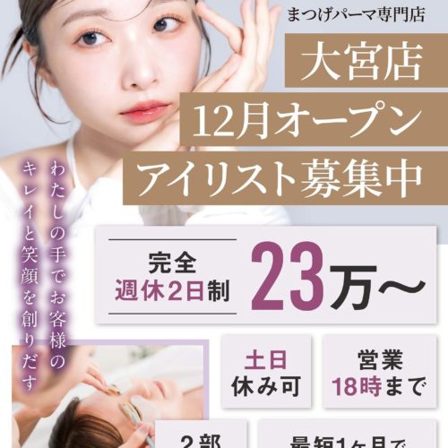 12月にFeliceBEAUTY大宮店がNEWOPENします! まつ毛パーマ&アイブロウ専門店になります オープンニングスタッフ募集中 未経験経験者 まつ毛パーマ アイリスト アイブロウ マツ…