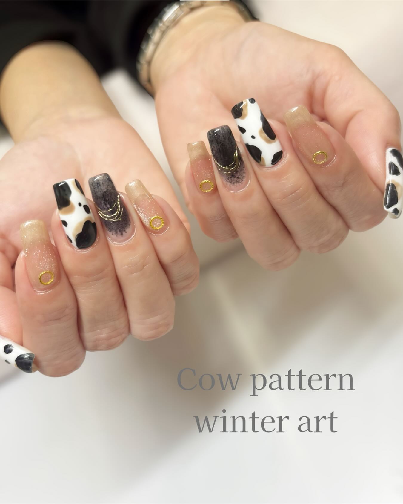 川間ネイルサロン 牛柄ネイル 冬ネイルデザイン アニマルアート