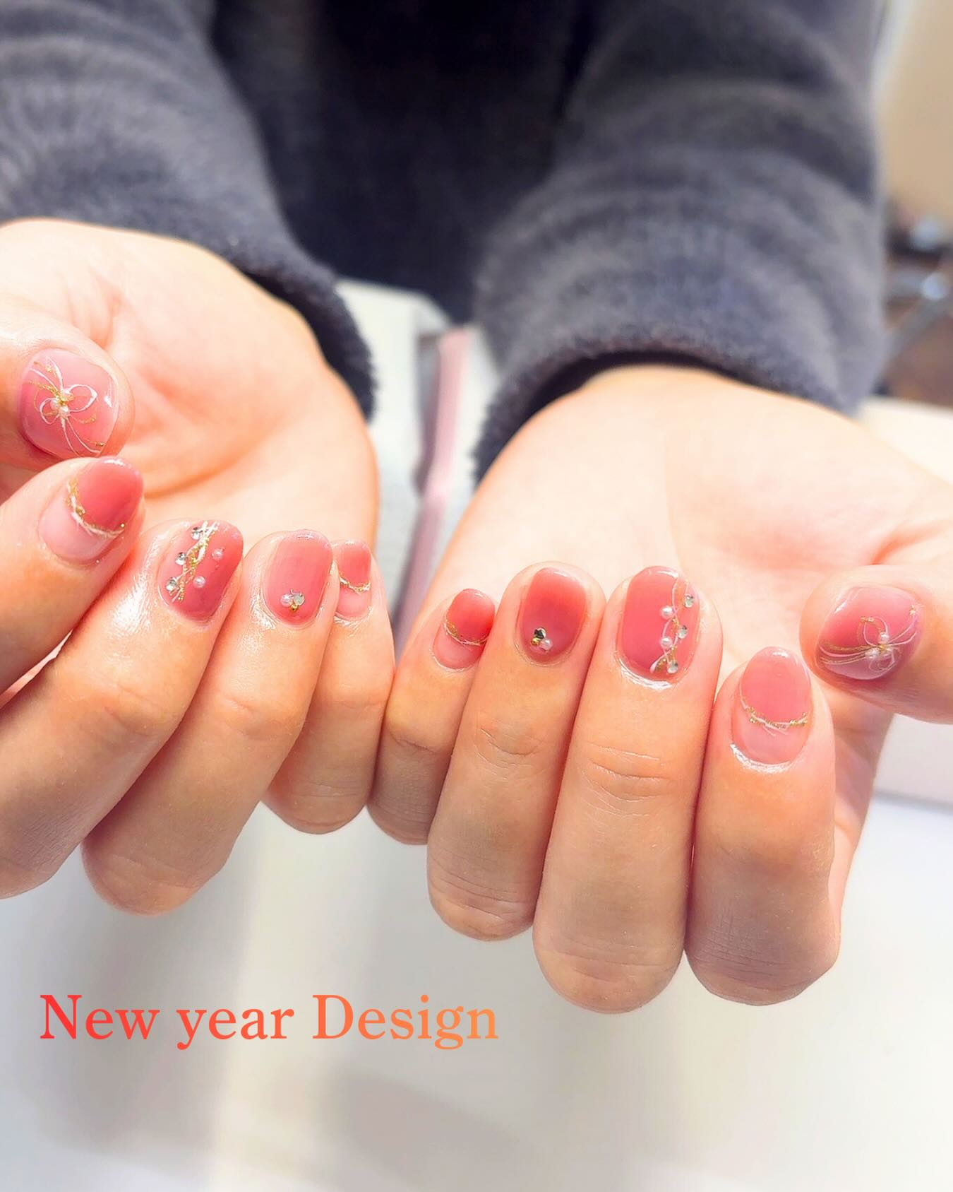 川間ネイル オフィスネイル お正月デザイン 大人ネイル