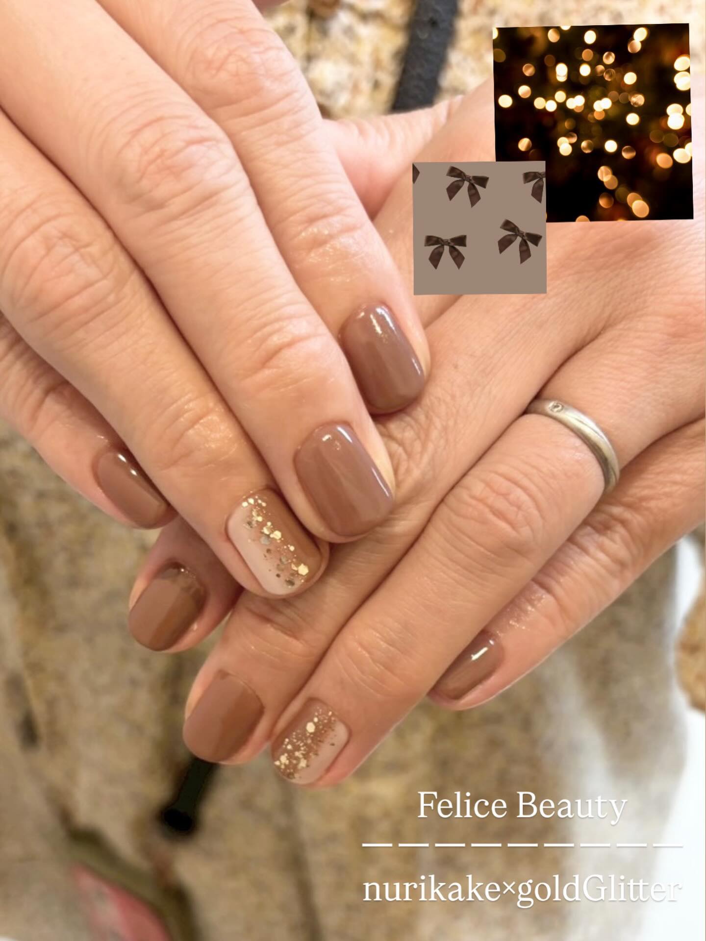 落ち着いたブラウンカラーに、さりげないゴールドラメをプラスした大人ネイル🤎