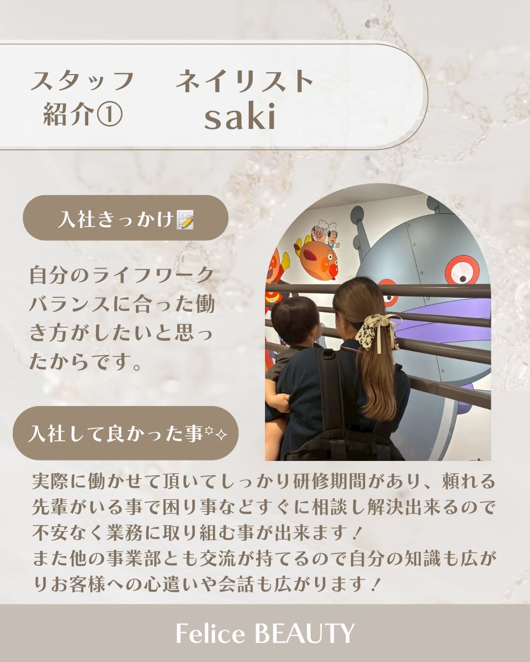 Felice BEAUTYではママさんスタッフも