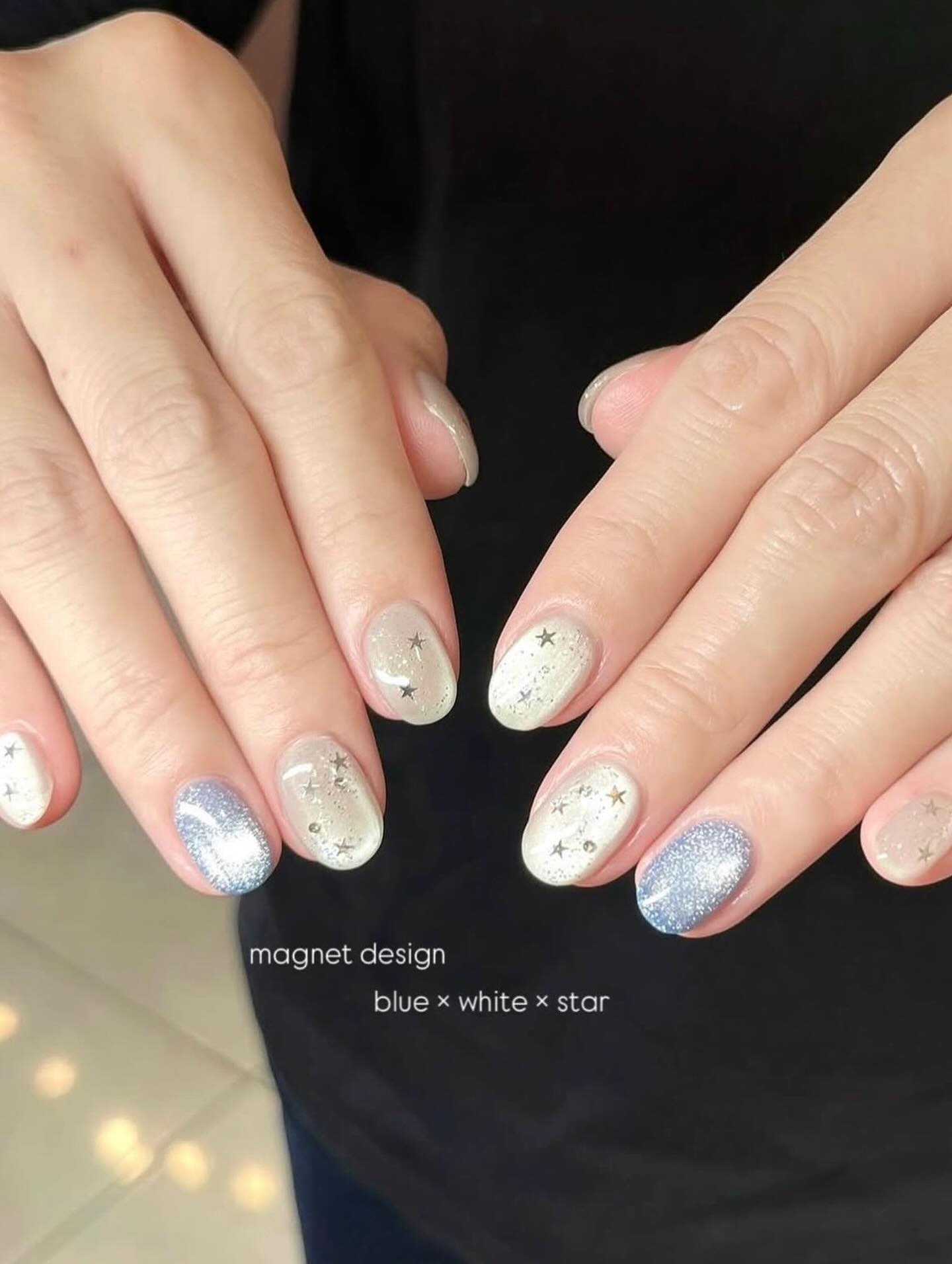 ちゅるんとした仕上がりでスターのホロがキラキラ可愛いネイル